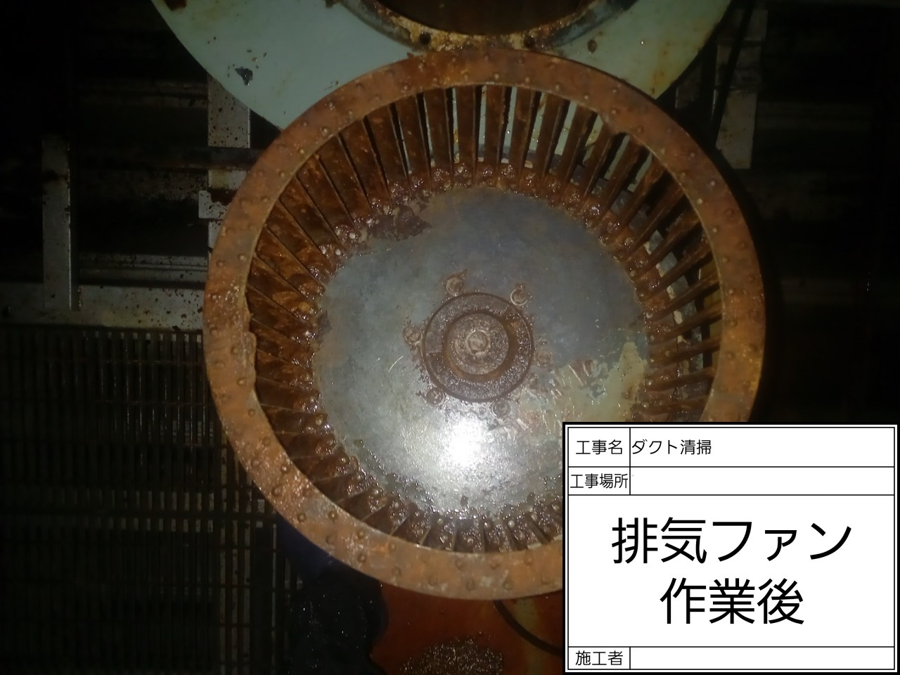 まずは排気ファンを分解し、羽根にこびりついた頑固な油汚れを専用洗浄剤と高圧洗浄で徹底的に除去しました。