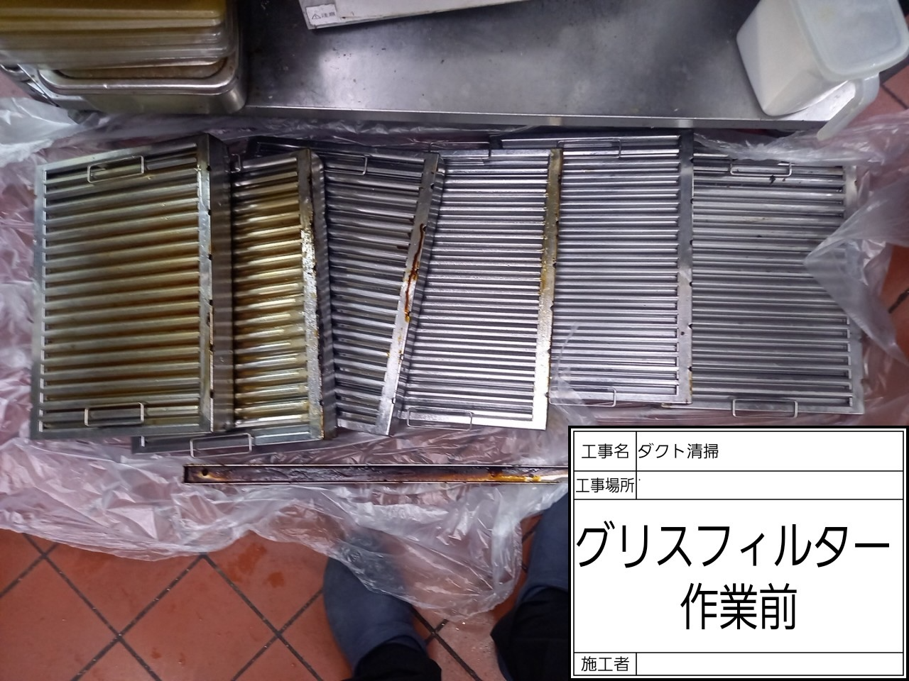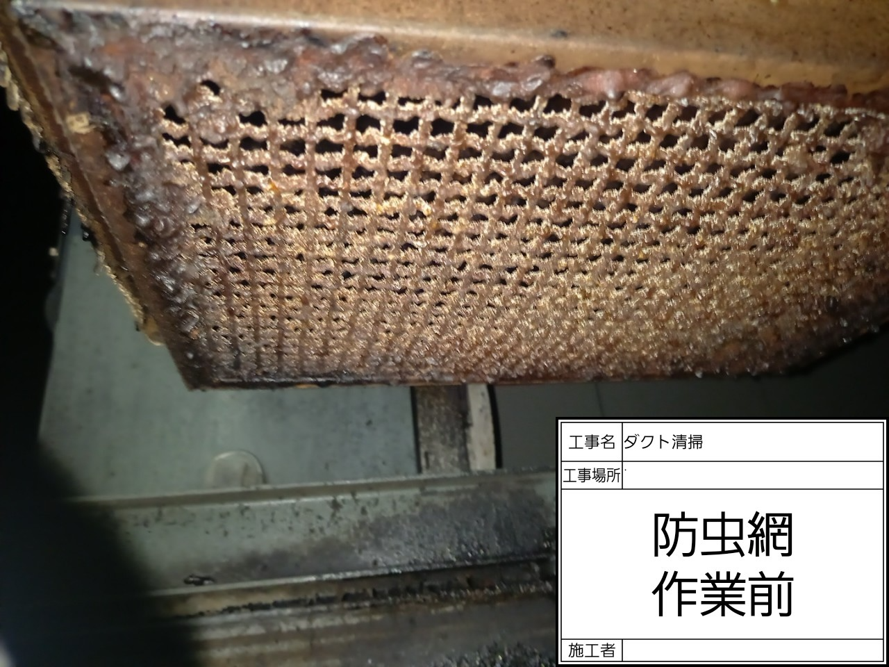 「厨房の換気が弱く、においがこもる」とのご相談をいただき、ダクトメンテナンスを実施しました。点検してみると、排気ファンや防虫網には油とホコリが厚く付着し、さらにグリルやフライヤー周りの油汚れも非常にひどい状態でした。
